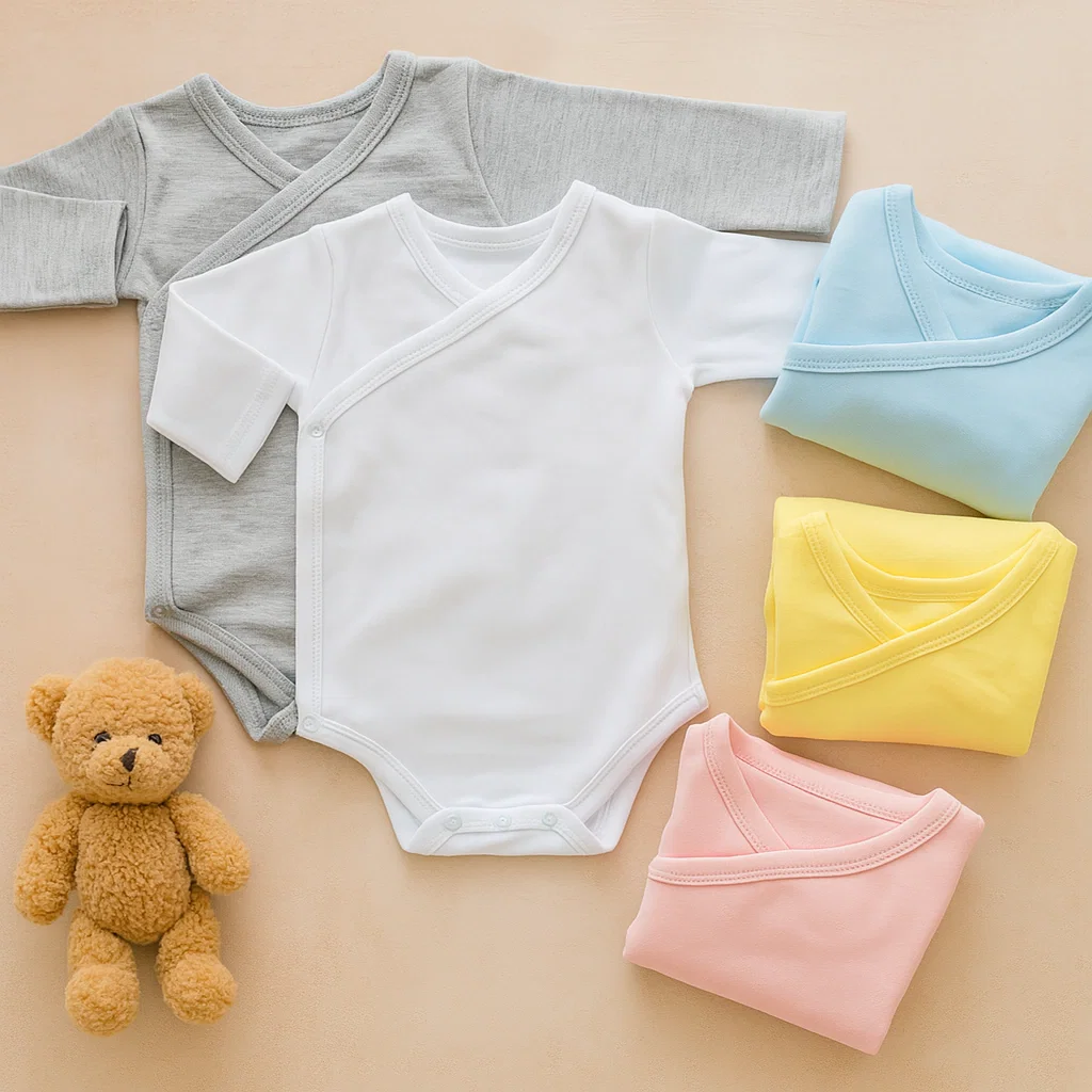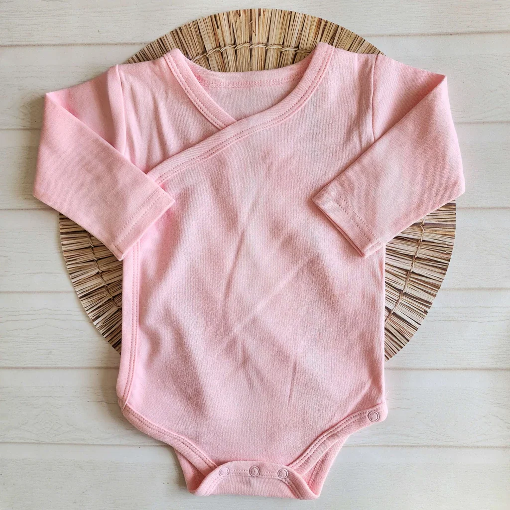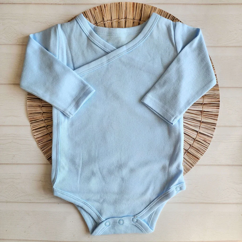 Body cruzado de manga larga con apertura lateral que evita pasar por la cabeza del bebé.